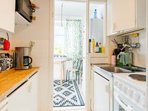 - Liesi: sähköliesi. Työtasot: puu. Kylmäsäilytys: jääkaappi/pakastin.