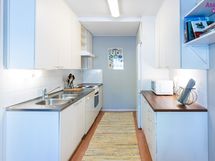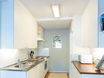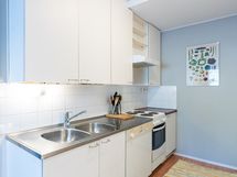 - Liesi: sähköliesi. Kylmäsäilytys: jääkaappi/pakastin. Varustus: astianpesukone, kiinteät valaisimet, liesituuletin / suodatin.