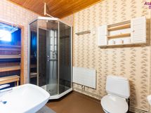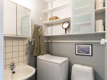 - Varustus: suihkukaappi, wc-istuin, suihku, kiinteät valaisimet. Erillisen WC:n kuvaus: Asunnon erillinen WC alakerrassa. Yläkerrassa on kylpyhuoneessa toinen WC-istuin. Varustus: pesukoneliitäntä, peilikaappi, bidee-suihku.
