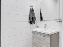 - Pesutilojen varusteet: WC-istuin, suihku ja lattialämmitys. Erillisten WC:n lukumäärä: 1. Erillisen WC:n varusteet: WC-istuin, lattialämmitys, allaskaappi ja peili.