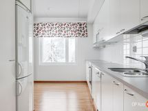 - Jääkaappipakastin, lattialiesi, liesituuletin, astianpesukone, kaapistot, kiinteät valaisimet.