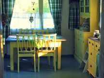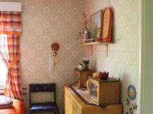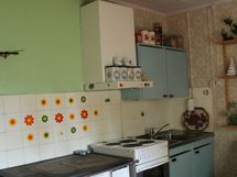 - Seinät tapetoitu, muuri maalattu, keittiökalusteet maalattu.