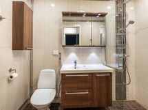 - Varustus: suihkuseinä, pesukoneliitäntä, wc-istuin, suihku, peilikaappi, kiinteät valaisimet, kylpyhuonekaapisto.