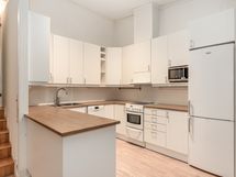 - Liesi: keraaminen. Työtasot: puu. Kylmäsäilytys: jääkaappi/pakastin. Varustus: liesituuletin, mikroaaltouuni, astianpesukone. Keittiö uusittu v. 2016