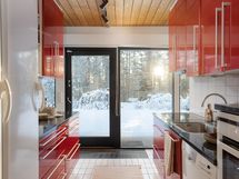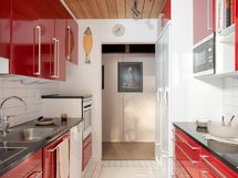 - Liesi: induktio, erillisuuni. Työtasot: kivi. Kylmäsäilytys: jääkaappi, pakastin, viinikaappi. Varustus: mikroaaltouuni, astianpesukone, kiinteät valaisimet, liesituuletin / hormi. keittö remontoitu v. 2006, punaiset kaapit ja graniittikivitasot.
