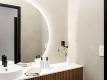 - Pesutilojen kuvaus: saippuasyvennyshylly, linjakaivot. Varustus: lattialämmitys, wc-istuin, suihku, peili, kiinteät valaisimet, kylpyhuonekaapisto. Varustus: lattialämmitys, bidee-suihku.
