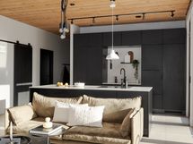 - Liesi: induktio, erillisuuni. Työtasot: kivi. Kylmäsäilytys: jääkaappi, pakastin. Varustus: astianpesukone, kiinteät valaisimet, liesituuletin / suodatin. Puusepänliike Astikainen
