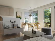 Valmistuminen on toukokuussa 2026. Valokuvat ovat malliasunnosta A4 62,5 m².