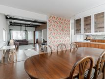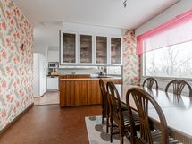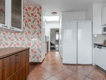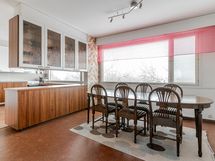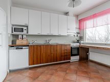 - Isokokoinen ja valoisa keittiö, jonka vieressä on tilava ruokailutila. Keittiön puolellekin mahtuu ruokapöytä. Runsaasti kaapisto- ja tasotilaa ja lattialla on helppohoitoinen laattalattia, jossa lattialämmitys.