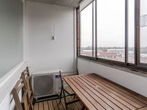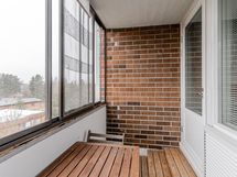 - Lasitettu parveke. Parvekkeen ilmansuunta: Lounas. Näkymät huoneistosta/parvekkeelta: Kaksi erillistä parveketta, joista toiseen on käynti olohuoneesta ja toinen on makuuhuoneesta. Olohuoneen viereinen parveke on lasitettu.