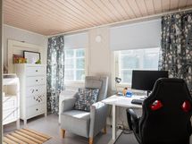 Asuintilat jakautuvat kahteen kerrokseen ja tarjoavat yhteensä noin 106 neliötä asumispinta-alaa. Alakerrassa on selkeästi rajatut oleskelu- ja ruokailutilat sekä keittiö, jossa on kaikki tarvittava arjen ruoanlaittoon. Olohuoneessa varaava pönttöuuni tuo lämpöä ja tunnelmaa, ja ilmalämpöpumppu helpottaa lämpötilan säätelyä. Yläkerran makuuhuoneet ovat tilavia ja lattioiltaan puuta.