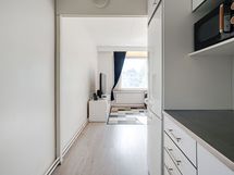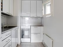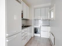- Keittiön varusteet: Jääkaappipakastin, liesituuletin, liesi ja erillisuuni. Liesi: Keraaminen liesi. Työtason materiaali: Laminaatti.