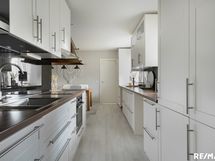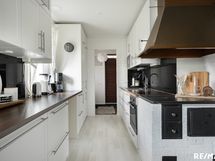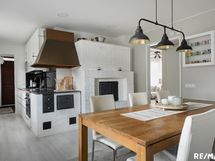 - Keittiön varusteet: Jääkaappipakastin, liesi, erillisuuni, mikroaaltouuni ja astianpesukone. Liesi: Induktioliesi ja puuhella. Työtason materiaali: Laminaatti.