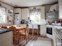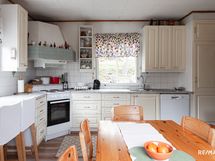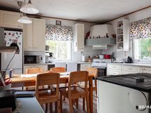 - Keittiön varusteet: Jääkaappipakastin, liesi, liesituuletin, astianpesukone ja puuliesi. Liesi: Valurautaliesi, puuhella ja sähköhella. Työtason materiaali: Laminaatti.