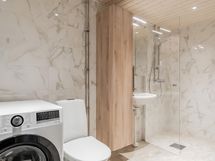 - Sauna, sähkökiuas, kylpyhuone, erillinen wc, suihku, suihkuseinä, peilikaappi, kaapit, allaskaappi wc, pesukoneliitäntä kph:ssa, lattialämmitys sähköinen, kiinteät valaisimet. Saneerattu perusteellisesti vuonna 2024/3. Erillisen wc:n peilikaappi, allas ja allaskaappi sekä wc-pönttö ja hana uusittu 2024.