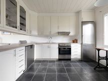 - Keraaminen liesi, Jääkaappi, Kaapisto, Liesituuletin, Astianpesukone, Pesukone, Pesukoneliitäntä