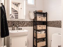 - Pesutilojen varusteet: WC-istuin, suihku, suihkuseinä, pesukoneliitäntä, lattialämmitys, pesuallas, allaskaappi, bidee-suihku ja peilikaappi. Erillisten WC:n lukumäärä: 1. Erillisen WC:n varusteet: WC-istuin, peili, pesuallas, allaskaappi ja bidee-suihku.