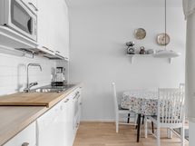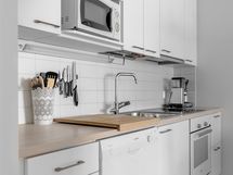 - Jääkaappipakastin, erillisuuni, induktioliesi, liesituuletin, astianpesukone, kaapistot, kiinteät valaisimet.