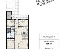 - Lisätietoja säilytystiloista: Kullekin asunnolle kuuluu oma puolilämmin varasto / tekninen tila.