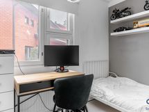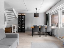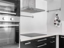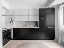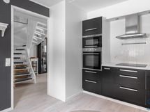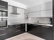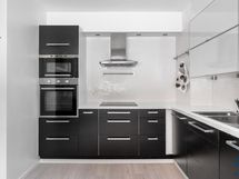 - Integroitu jääkaappipakastin ja astianpesukone, induktio liesitaso, kalusteuuni, liesituuletin (ns. talotuuletin). Laminaattityötasot. Laminaattilattia ja maalatut seinät. Keittiö on uusittu koneineen vuonna 2009 (astianpesukone 2019).