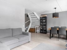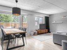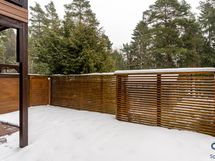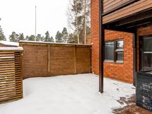 - Olohuoneesta on käynti takapihalle, joka on kokonaisuudessaan terassia.