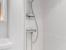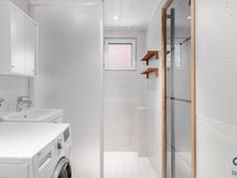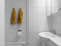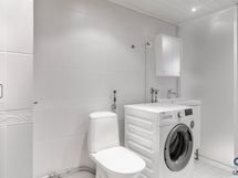 - Pesutilojen kuvaus: Seinät ja lattia laatoitettu. Suihku, suihkuseinä, pesukoneliitäntä, peilikaappi, pesuallas, kaapisto, wc-istuin, lattialämmitys. Erillisten WC:n lukumäärä: 1. Erillisen WC:n kuvaus: Erillinen wc sisääntulokerroksessa. Pesuallas, laatikosto, peilikaappi.