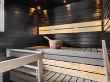 - Laattalattia. Sähkökiuas. Saunassa ikkuna. Lauteet, katto ja seinät käsitelty -23.