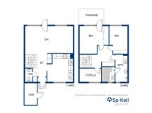 - Kylmä ulkovarasto ja kaapistot. Lisätietoja säilytystiloista: Asunnon ulko-oven vieressä varasto (kylmä). Molemmissa makuuhuoneissa sekä yläkerran aulatilassa liukuovikaapistot. Eteisessä kaapisto.