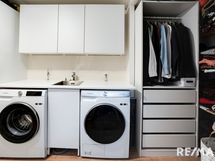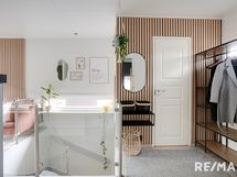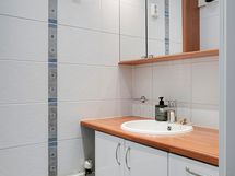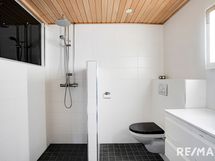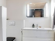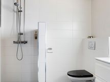 - Pesutilojen varusteet: Pesuallas, allaskaappi (Kappi ja hana vaihdettu 9/2025 putkimiehen toimesta, allaskaappiin vuotaneiden tilalle.), lattialämmitys, bidee-suihku, suihkuseinä (Muurattu, jossa syvennys pesuaineille), suihku (Sadesuihku), peili (Valolla) ja wc-istuin (Seinä-wc). Pesutilojen kuvaus: Edelleen kauniit ja hyväkuntoiset pesutilat vuodelta 2012. Erillisten WC:n lukumäärä: 1. Erillisen WC:n varusteet: WC-istuin, pesuallas, peilikaappi, allaskaappi (ja kulmakaappi) ja bidee-suihku. Erillisen WC:n kuvaus: Yläkerrassa eteisen yhteydessä.