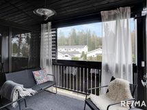 - Lasitettu terassi ja parveke aurinkoiseen etelään (lasitukset asennutettu v. 2023, 10 vuoden takuulla). Parvekkeella on kokolattiamatto.