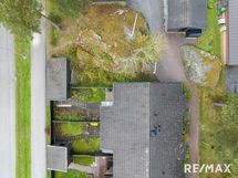 - Pääkerroksesta 2. kerroksen näkymät Nuhjalantielle ja alakerran makuuhuoneista näkymät yksityiselle takapihalle.
