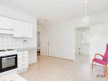Pienempi huoneisto on kompakti ja toimiva. Yksi makuuhuone, tupakeittiö ja kylpyhuone. Ihanteellinen vaihtoehto vaikka etätyöpisteeksi.