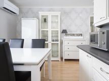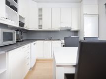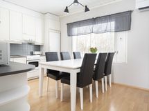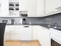 - Keittiön varusteet: Jääkaappi, erillinen pakastin, liesituuletin, astianpesukone ja kiinteät valaisimet. Liesi: Keraaminen liesi. Työtason materiaali: Laminaatti.