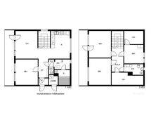 - Pinta-alan peruste: Ei tarkistusmitattu. Pinta-alat saattavat tämän ikäisissä kohteissa (rekisteröity ennen 01.01.1992) poiketa olennaisestikin asuinrakennusten nykyisten mittaustapojen ja standardien (SFS 5139) mukaan laskettavasta asuintilojen pinta-alasta. Pinta-ala voi siis olla edellä mainittua pienempi tai suurempi. Pinta-alat ilmoitettu rakennuslupapiirustuksen mukaan.