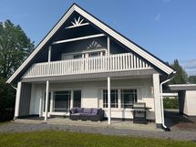 2017 Talon tien puoleinen pääty ja parvekkeen alareuna paneloitu, myös autotallin puupaneloinnit uusittu