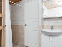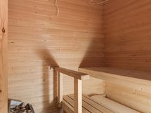 - Sauna, sähkökiuas, suihku, peilit, peilikaappi, allaskaappi, pesukoneliitäntä, lattialämmitys, kiinteät valaisimet.