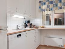 - Jääkaappipakastin, erillisuuni, liesituuletin, astianpesukone, kaapistot, kiinteät valaisimet.