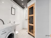 - Sauna, sähkökiuas, kylpyhuone, suihku, peilit, pesukoneliitäntä, lattialämmitys, kiinteät valaisimet.