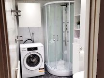 Pesutilojen kuvaus: Laatoitettu, suihkukaappi, käsienpesuallas, peilikaappi, pesukoneliitäntä, wc-istuin. Erillisten WC:n lukumäärä: 2. Erillisen WC:n kuvaus: Erillinen wc sekä pesuhuoneessa wc-istuin.