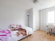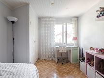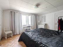 Alakerrassa yksi makuuhuone ja yläkerrassa kaksi makuuhuonetta.