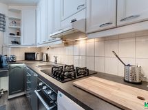 - Jääkaappi/pakastin, astianpesukone, kaasuliesi, erillisuuni, liesituuletin hormiin, kaapistot, pakastin (kellarissa)