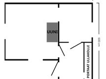 Ulkoseinien (pitkät sivut) mitat: 675 cm X 600 cm