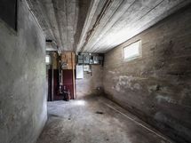 Kellarikerroksen kylpyhuoneessa ja pukuhuoneessa lattia ja seinät betonia