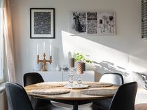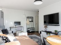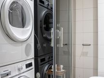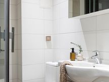 - Varustus: suihkukaappi, pesukoneliitäntä, lattialämmitys, wc-istuin, peilikaappi, kiinteät valaisimet, kylpyhuonekaapisto.