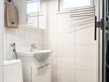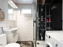 - Pesutilojen kuvaus: Varustus: höyrysuihkukaappi radiolla varustettuna, wc-istuin, peilikaappi, allaskaappi, pesukoneliitäntä, bidee, lattialämmitys.