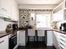 - Keittiön varusteet: Jääkaappipakastin, astianpesukone, liesi ja liesituuletin. Liesi: Keraaminen liesi. Keittiö remontoitu 2016.