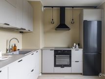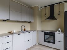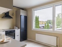- Liesi: induktio, erillisuuni. Työtasot: laminaatti. Kylmäsäilytys: jääkaappi/pakastin. Varustus: liesituuletin, astianpesukone, kiinteät valaisimet.