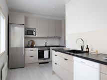 - Liesi: induktio. Työtasot: laminaatti. Kylmäsäilytys: jääkaappi. Varustus: astianpesukone. komposiittiallas