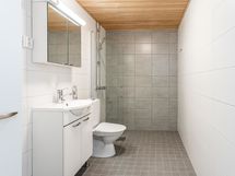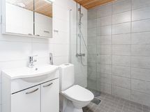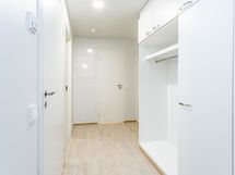 Kylpyhuoneessa on kauniin harmoniset pinnat, lattialämmitys ja paikka pyykinpesukoneelle. Makuuhuoneessa ja eteisessä on mukavasti kaappitilaa ja tämän lisäksi löytyy myös erillinen vaatehuone, joten säilytystilasta ei ole tässä asunossa puutetta!