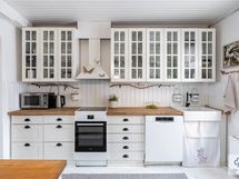 - Keittiön varusteet: Jääkaappi, erillinen pakastin, liesi ja astianpesukone. Liesi: Keraaminen liesi. Työtason materiaali: Puu. Keittiö uusittu 2015.
